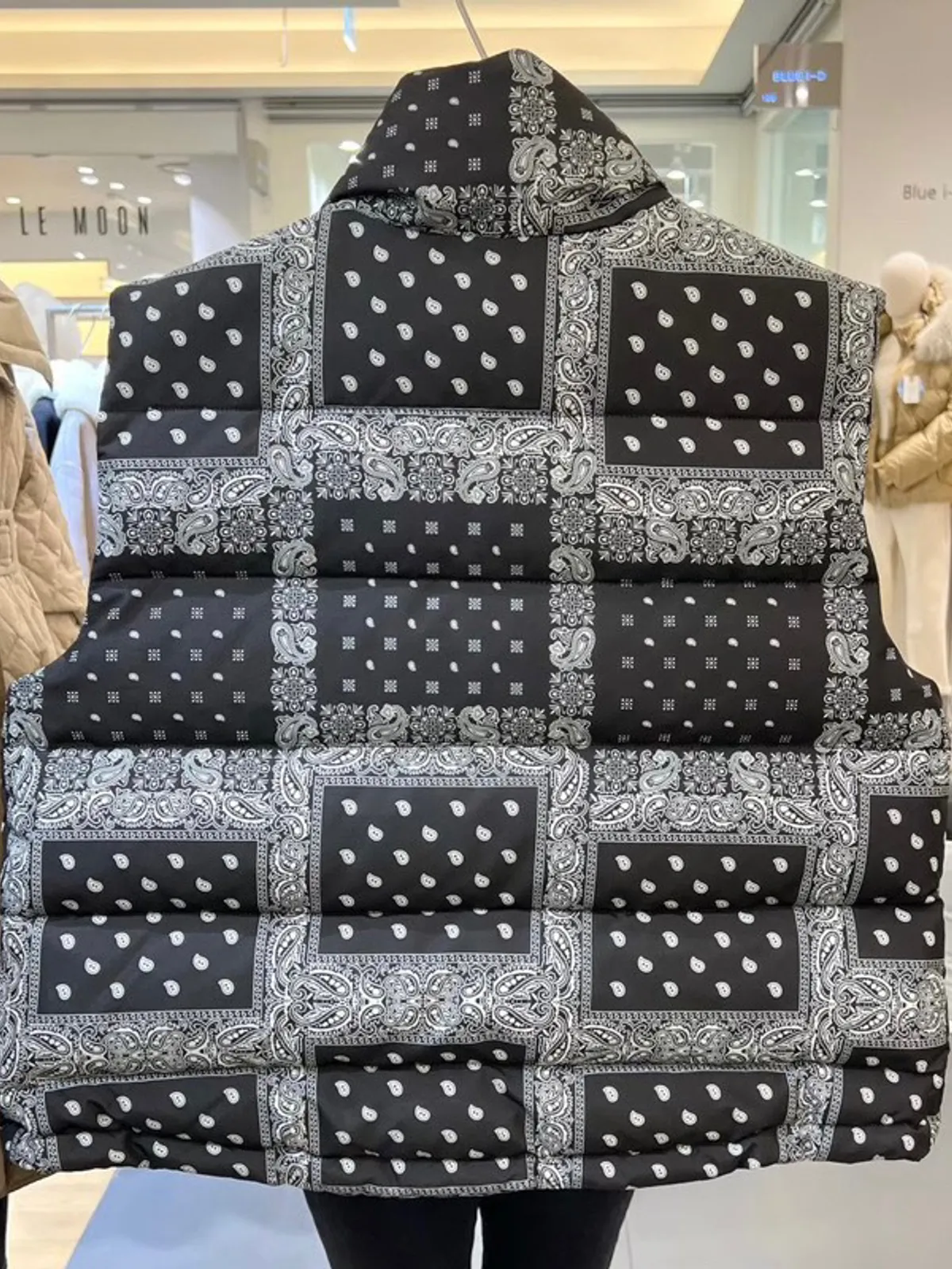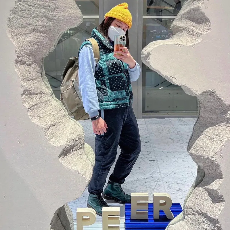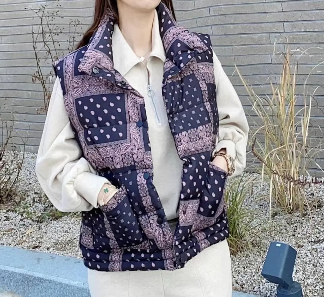 這款拼接羽絨背心,以變形蟲拼接經典Paisley圖騰,帥氣中帶點街頭俏皮感。