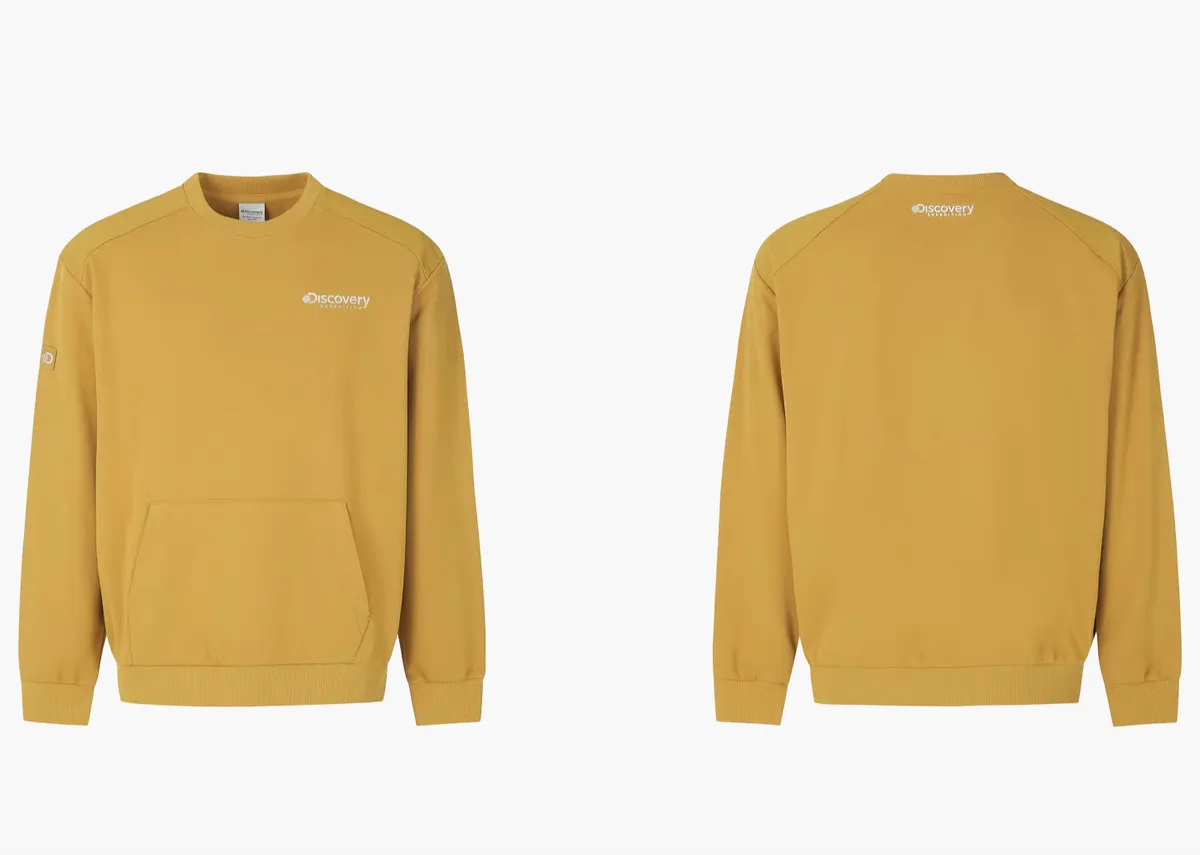 經典設計:胸口 Discovery Expedition 品牌小標誌,低調卻具存在感