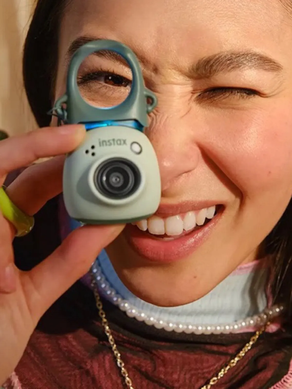 史上最迷你的拍立得富士相機,開心果綠搭配大眼仔造型很吸眼球。
