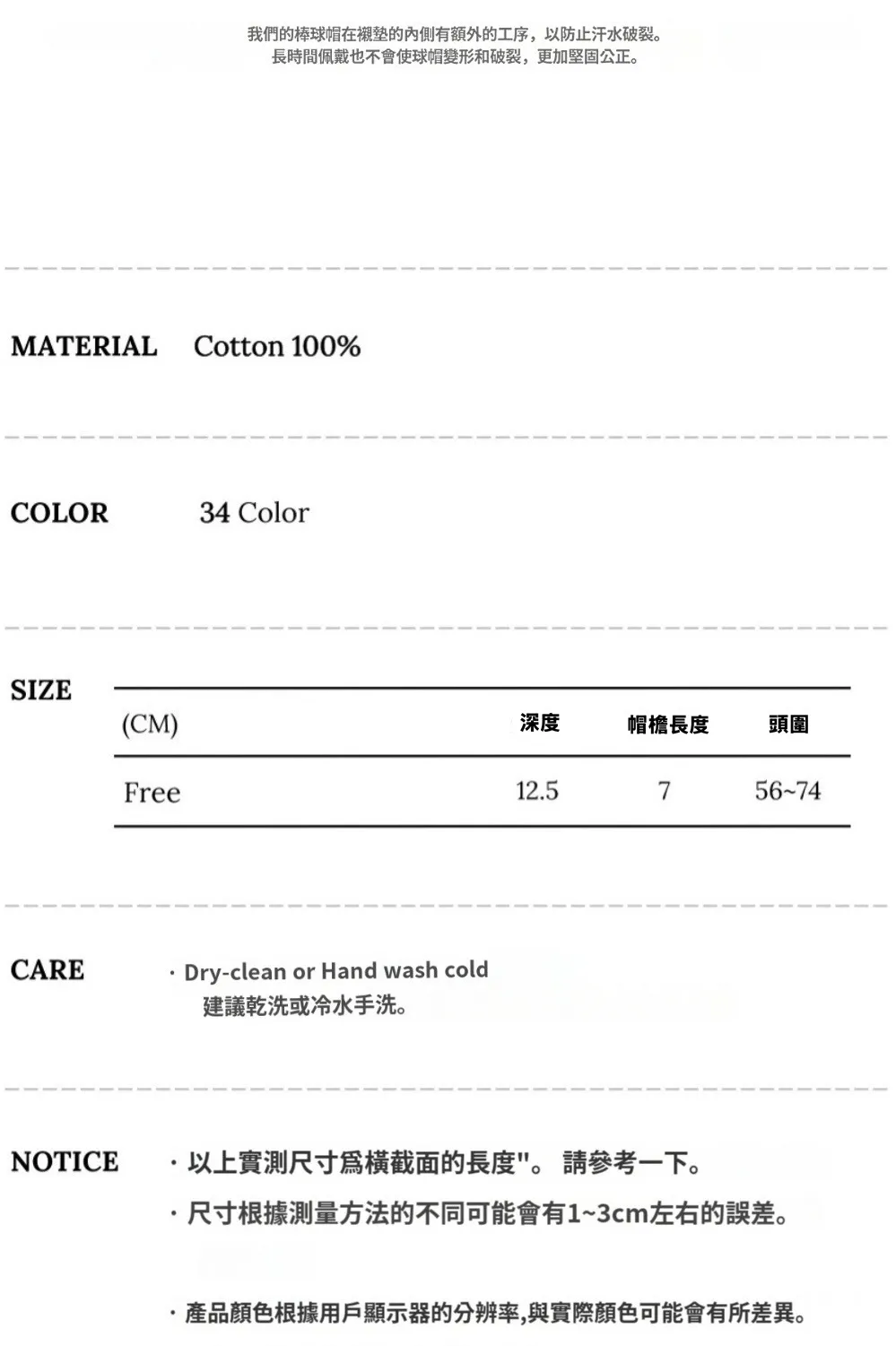 帽型不是那種軟趴趴、戴了沒精神的版型,帽體夠深、帽檐剛好貼合頭型,不會整頂浮在上面~