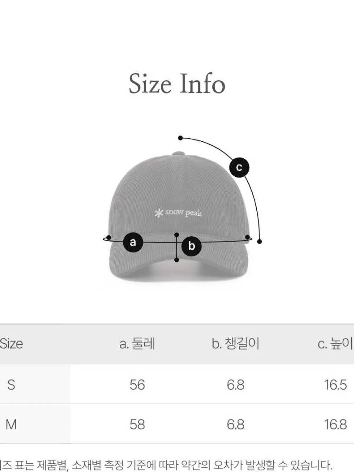 【M-Day】韓國SNOW PEAK燈芯絨棒球帽S25FUFBC63