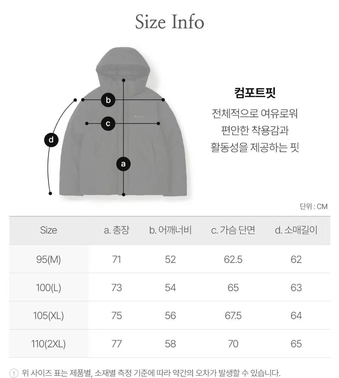 尺寸說明:尺寸表僅供參考,因品牌標準、版型與測量方式不同,實際尺寸可能略有誤差,屬正常情況。