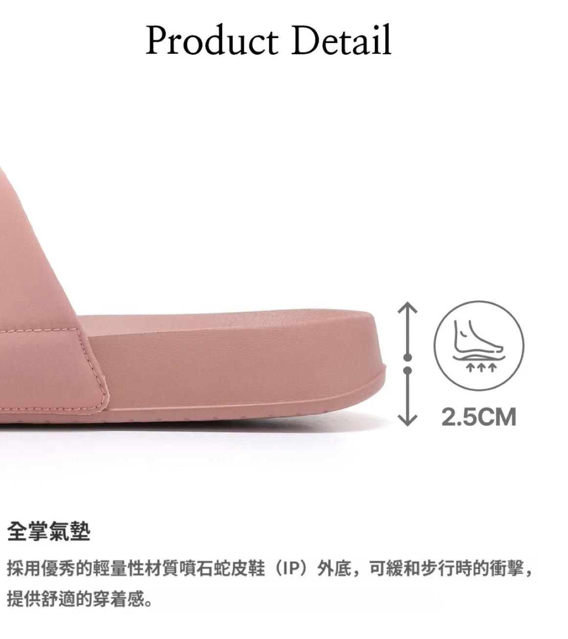 2.5cm厚底結構,提供穩定支撐力與包覆感