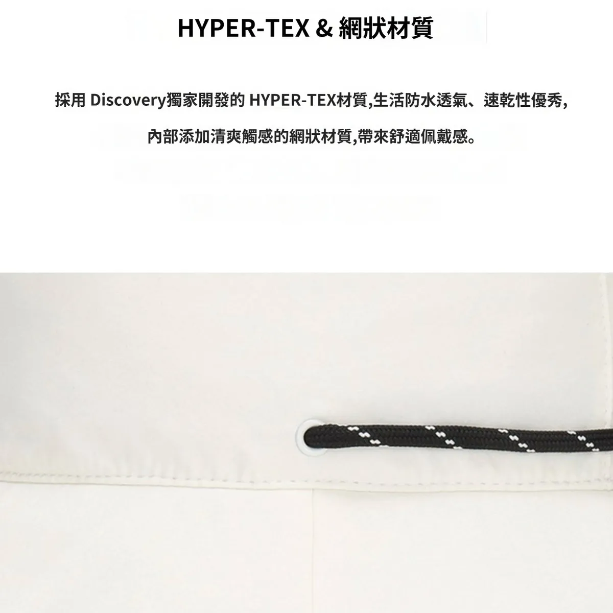 💦 Hyper-Tex 專利布料:防水・透氣・快乾,一整天都清爽