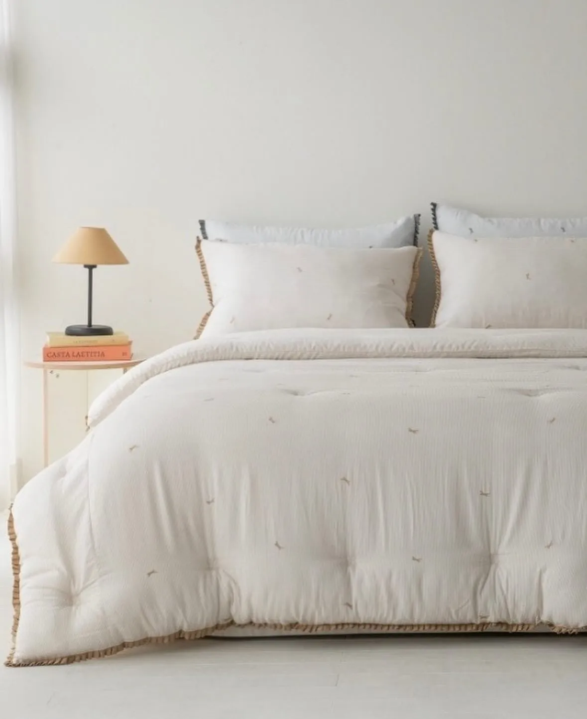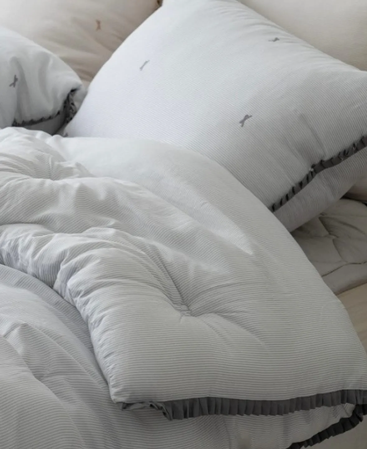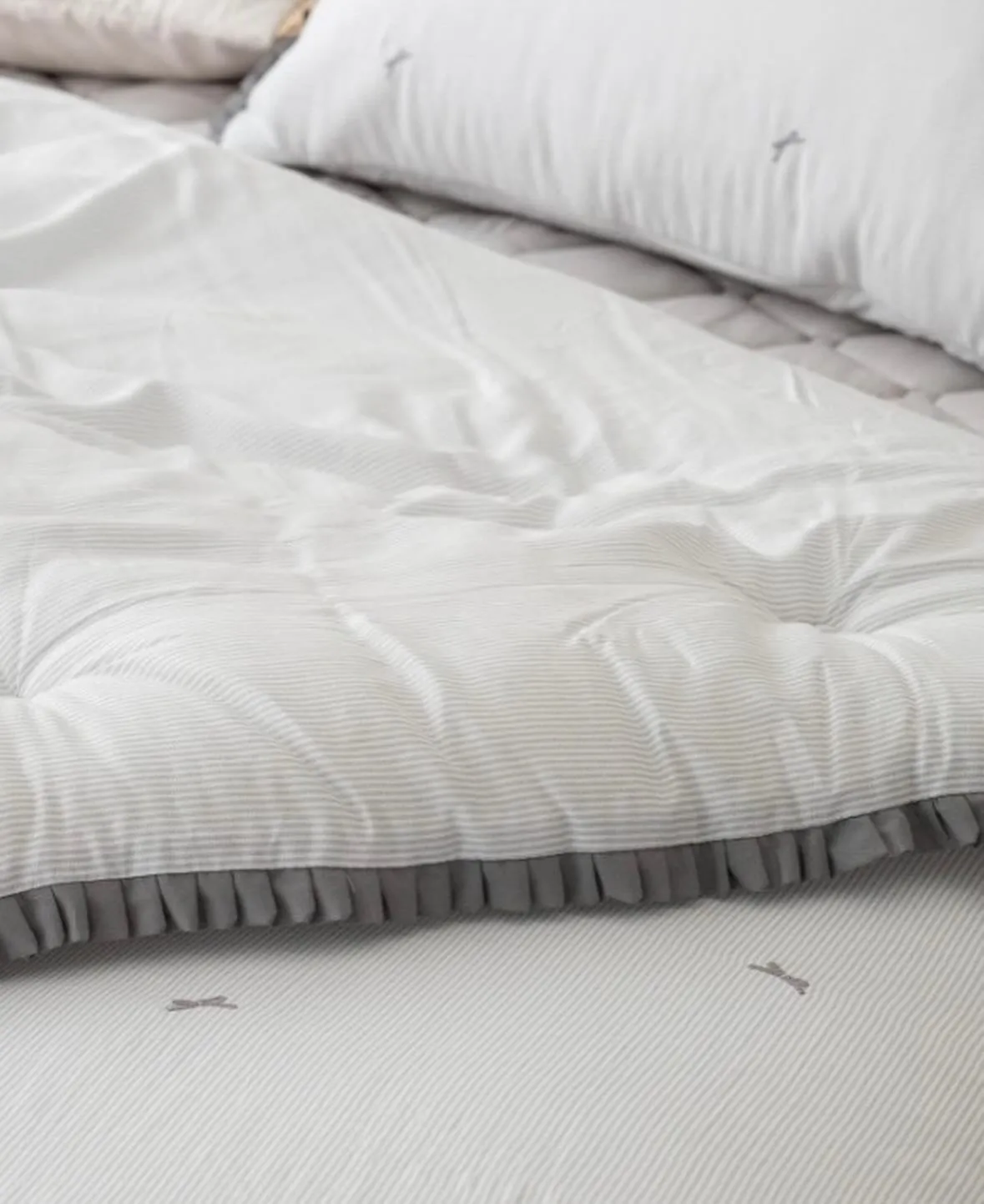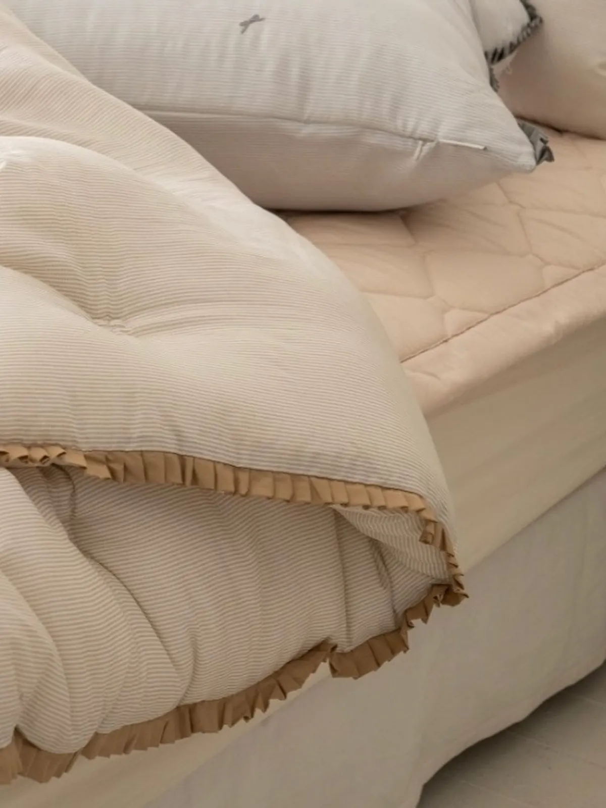 蝴蝶結 緞帶裙擺 四季厚被-(송화 미니리본)